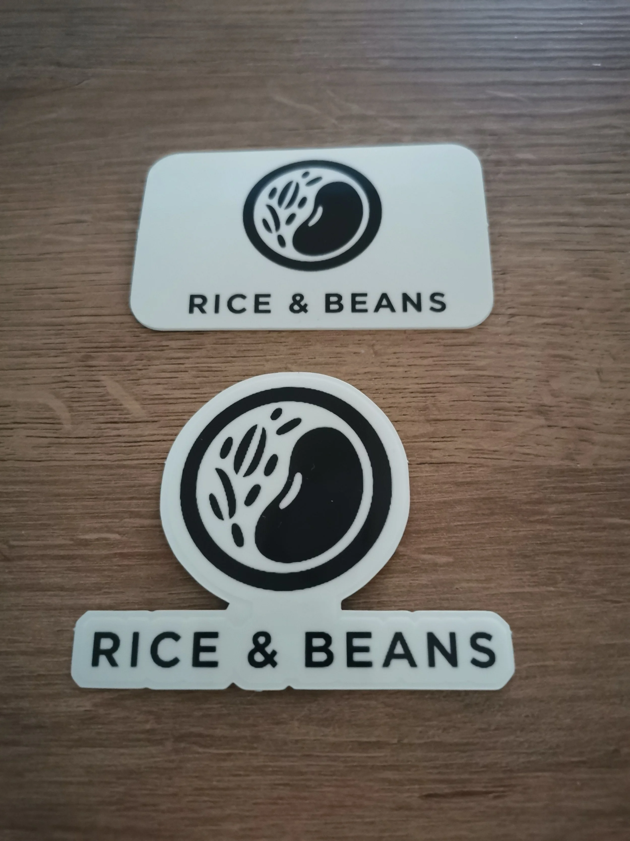 Vinyl Rice & Beans logo stickers.